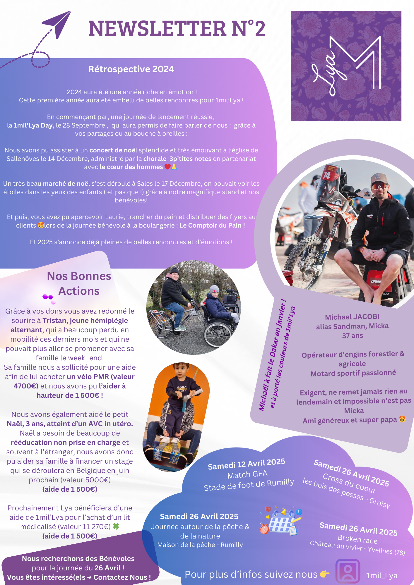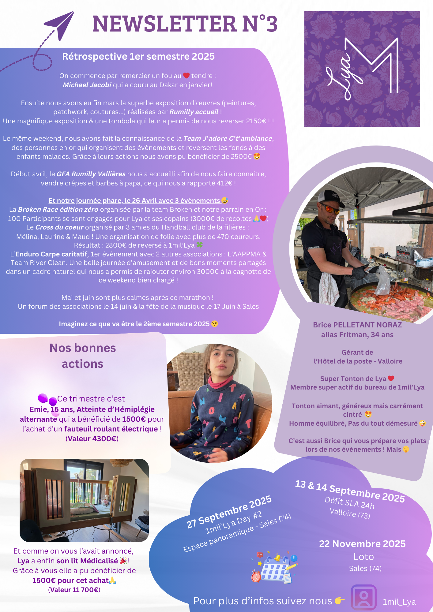Retrouvez ici toutes les précédentes newsletters 1mil’Lya, témoins de notre engagement quotidien pour améliorer la vie des enfants malades. Chaque édition reflète les actions menées et les sourires partagés grâce à votre soutien.